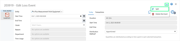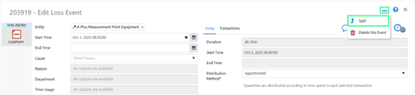 Users can now split an event directly from the A-Plus entry dialog, whether it is opened from A-Plus or Shift Log.
