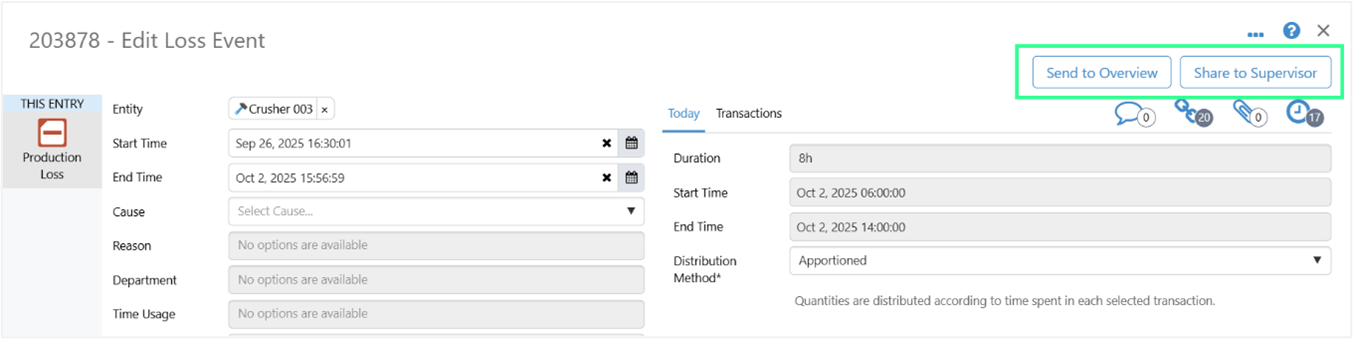 In Shift Log, administrators can create action buttons which allow users to easily share or create entries using specific criteria. This feature has now been added to A-Plus entries.
