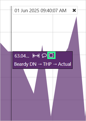 If a comment exists within the trace period, for one of the trace items, this is marked by a comment marker which you can click to view the comment. The comment marker matches the trace colour.