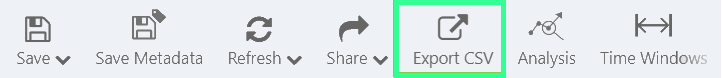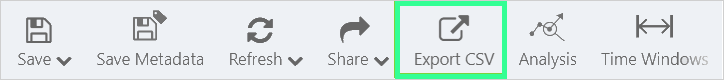 In the toolbar above the trace window, click the Export CSV button to export the data. Data errors are not included in the export.