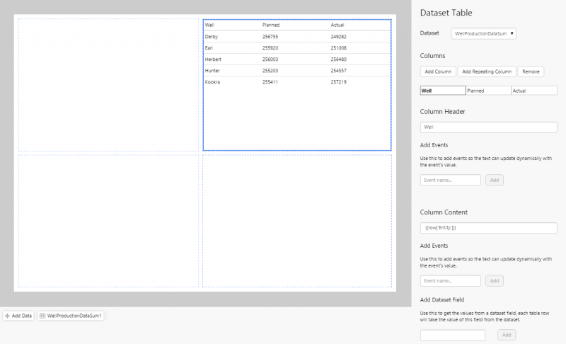 - Add the WellProductionDataSum1 dataset, and configure it as follows: