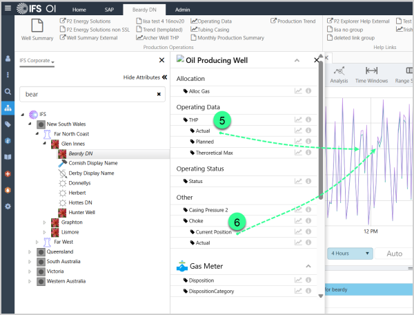 This adds {Beardy Well[Oil Producing Well]:THP!Actual} and {Beardy Well[Oil Producing Well]:Choke!Current Position} attribute values into the Trace Table, displayed respectively as Beardy Well-> THP-> Actual and