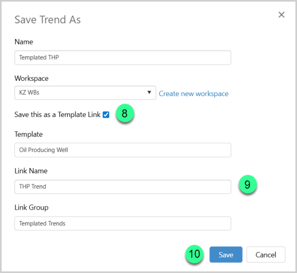 Tip: Before you start, identify which template this trend will be associated with. In our example, we are using the Oil Producing Well template.