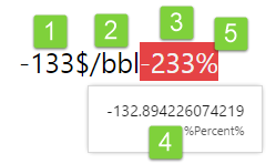 Actual value as a percentage of the target. Hover over the percentage to see the target value and what it represents (for example, 'oil target').