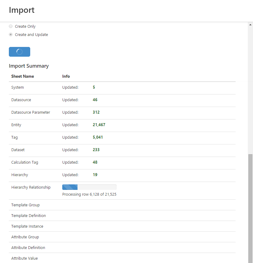 - Create and Update. Existing objects will be UPDATED with data from the import file, and new objects will be added if they do not exist.