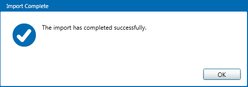 The import completes, with a message: